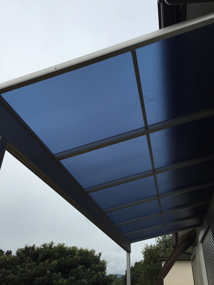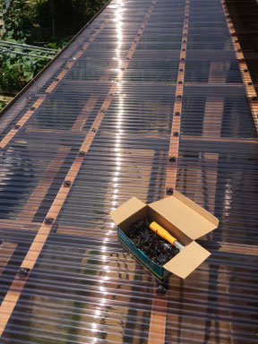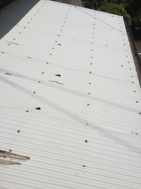 所々穴が空いていて、ちょっと引っ張ると割れてしまいます。 台風などで飛ばされる前に施工です。